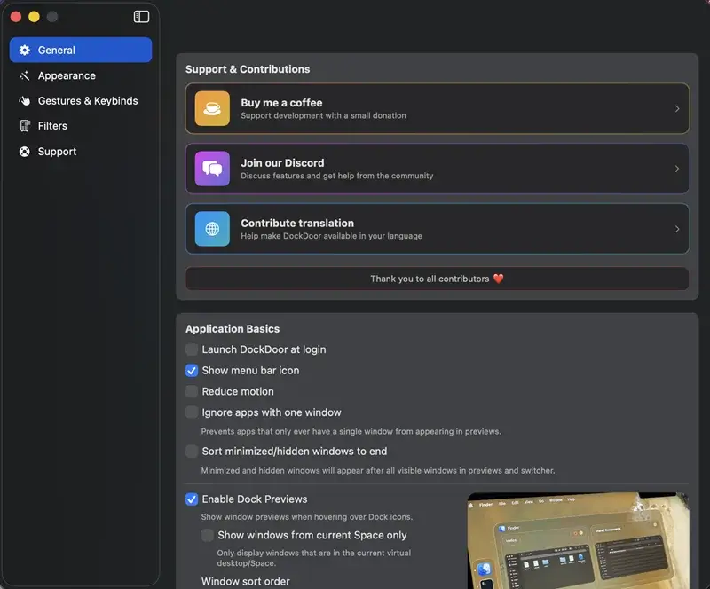 Because DockDoor adds a visual layer on top of the Dock, it is slightly more complex.